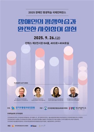 경기도평생교육진흥원과 한국장애인평생교육복지학회가 오는 26일 경기도 일산 킨텍스에서 2025 장애인 평생학습 국제 컨퍼런스를 개최한다.이번 컨퍼런스의 제목은 ‘장애인의 평생학습과 완전한 참여실현’이다. 컨퍼런스는 총 2부로 나누어 진행된다.1부는 해외 초청 연사들이 참여하는 세션으로 ‘모두를 위한 평생학습사회-장애인 평생학습권의 실현’을 주제로 한다. 캐나다 유타 트레비라누스 박사가 좌장을 맡으며 이탈리아의 피아짜 로베르타 박사, 멕시코의 마리아 레르마 콜로모 박사, 일본 나가세 오사무 연구원이 패널로 참여한다.2부에서는 모두를 위