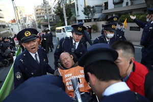 [편집자 주] 지난해 11월, 전국장애인차별철폐연대(아래 전장연)가 ‘파리 패럴림픽 특사단’에 이어 ‘일본 AA(Against Ableism, 비장애중심주의 철폐) 특사단’을 파견했다. 17명의 장애인·비장애인으로 구성된 특사단은 11월 22일부터 11월 27일까지 일본 도쿄, 오사카를 방문해 한국의 장애인권리 약탈 현실을 알렸다. 최근 3·1절을 맞아 일본에 재방문해 야스쿠니 신사 인근서 시설 수용을 강요하는 일본과 한국 정부를 규탄하기도 했다.11월 22일, 박경석 전장연 대표는 12년 전 선고받은 집행유예를 이유로 일본으로부터