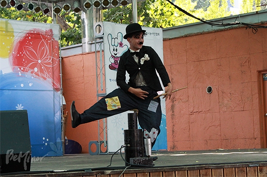 ![]() ▲찰리채플린 마임 연기를 선보이는 중국 농인 철봉 씨. |