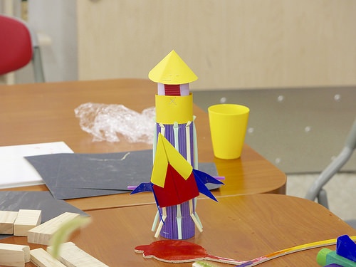 맞습니다. 좀 더 들여다보면 우리는 잘 배합된 색, 빨대를 이용해 볼륨감을 만든 센스, 기둥과 연결부위 등은 골판지로 만들어 살린 질감, 손으로 접어 덧댄 비행선.. 등등 세부적인 표현들을 볼 수 있게 되고 이것을 만든 사람이 손이 꽤 야무진 사람이구나 짐작하게 됩니다.