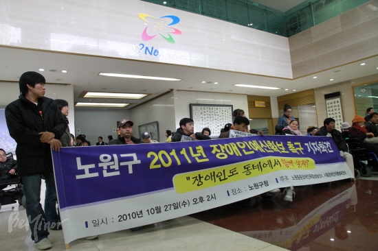 한편, 이날 면담에 앞서 서울장차연과 노원중증장애인독립생활센터는 늦은 2시 구청 로비에서 노원구 2011년 장애인예산확보 촉구 기자회견을 열었다.