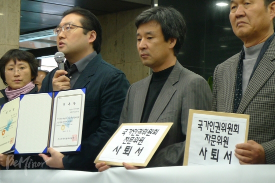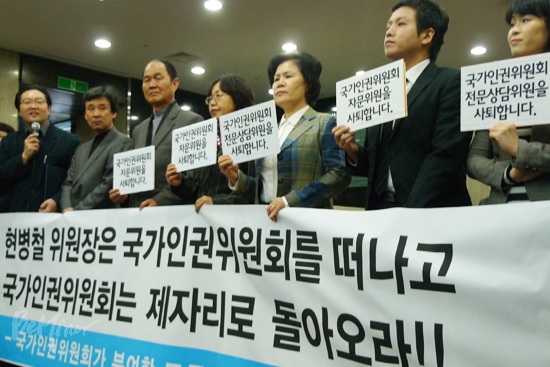 서강대 이호중 교수와 천주교인권위원회 김덕진 사무국장도 “오늘의 사퇴는 존재의미를 상실한 인권위에 대해 모두 반성하고 성찰하기 위해서이며, 인권위를 제자리에 갖다놓기 위한 행동”이라며 “현병철 위원장의 사퇴를 촉구함과 동시에 인권위가 바로 설 수 있도록 최선을 다하겠다”라고 밝혔다.