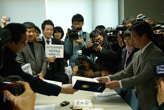 국가인권위원회(위원장 현병철, 아래 인권위) 정상화를 요구하는 목소리가 더욱 거세지고 있다. 인권위 위촉 전문위원, 자문위원, 상담위원 등 61명은 15일 오전 기자회견을 하고 현병철 위원장에게 사퇴서를 제출했다.