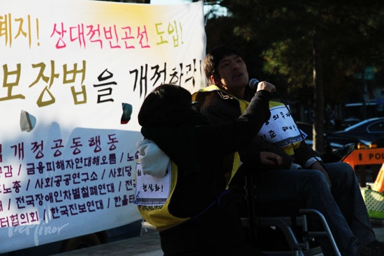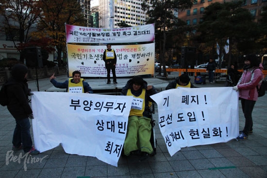 이에 앞서 기초법개정공동행동은 늦은 2시 보신각 앞에서 국민기초생활보장법 개정 촉구 결의대회를 열었다.