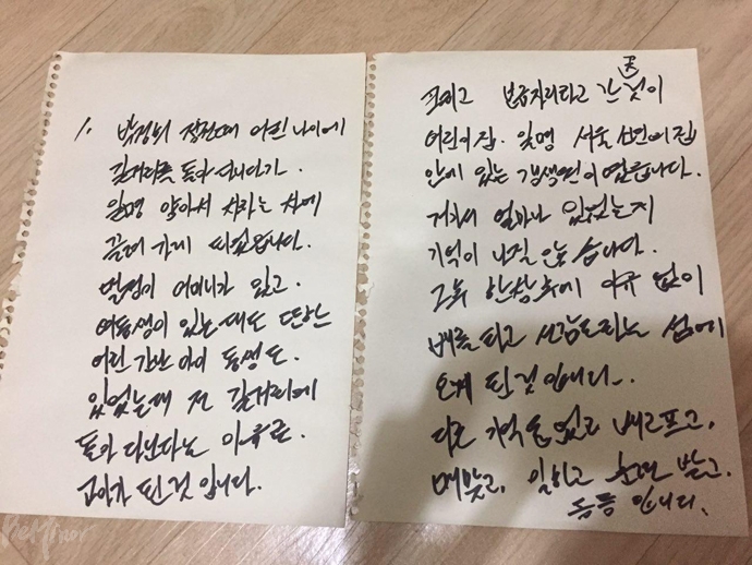 - 쉰한 살의 사내가 스케치북에 글을 써왔다