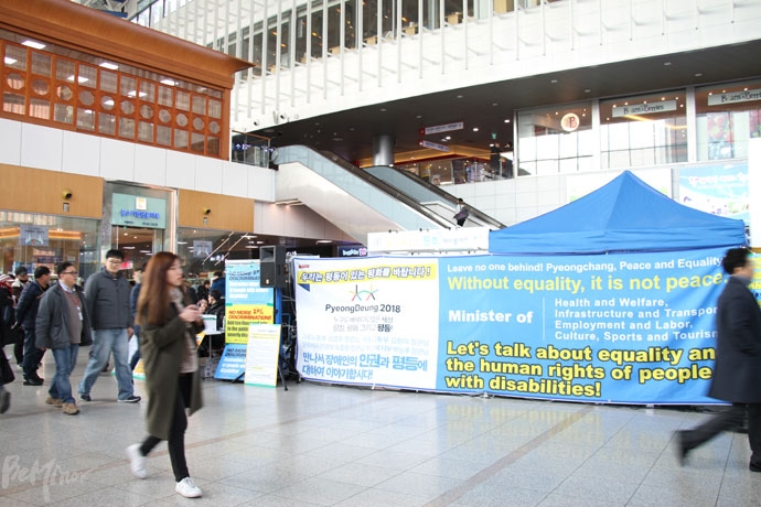 전국장애인차별철폐연대(아래 전장연)가 지난 13일, 박능후 보건복지부 장관, 김현미 국토교통부 장관, 도종환 문화체육관광부 장관의 면담을 요구하며 서울역에서 2박 3일 농성에 돌입했다.