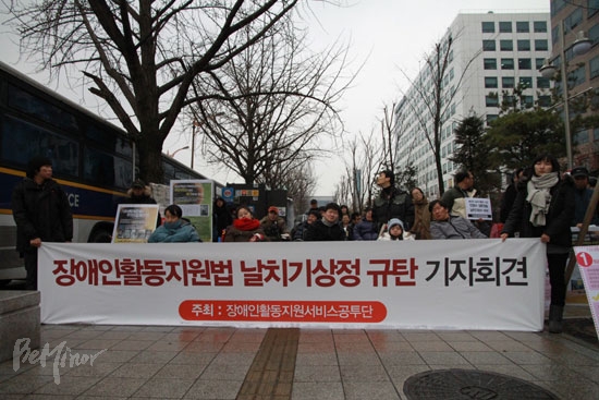 활동지원공투단은 “오늘의 직권상정은 이 땅 450만 장애인들의 생존권을 짓밟는 테러행위로 규정하고 향후 국회의장과 정부여당을 규탄하는 강력한 투쟁을 이어갈 것”이라고 강조했다.