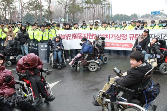 내년 10월 시행을 목표로 지난 11월 16일 국무회의 의결을 거쳐 다음날 국회에 보고된 정부의 장애인활동지원법안은 현행 장애인활동보조지원사업의 3만 명보다 2만 명 늘어난 5만 명을 대상자로 잡았다. 그러나 장애인계는 정부안이 본인부담금을 15%까지 높게 책정하고 1급 장애인과 나이로 대상자를 제한하며 서비스 상한선을 두는 등 독소조항이 있는 개악안이라며 이를 반대해왔다.
