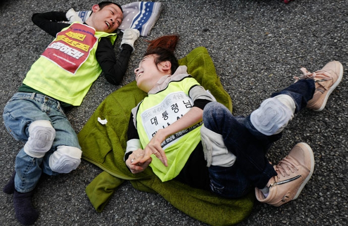 아스팔트 위는 땀과 눈물로 범벅이었습니다.
