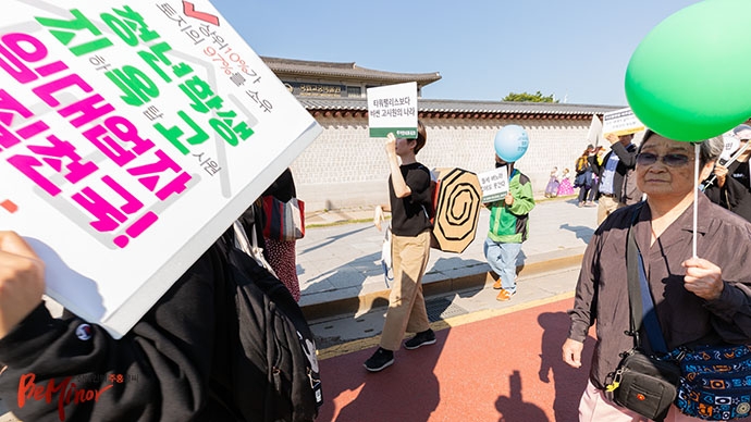 ‘세계 주거의 날’을 맞아 청년·세입자·홈리스 등이 정부에 안정적인 주거권 보장을 촉구하며 광화문에서 청와대까지 오체투지를 했다.