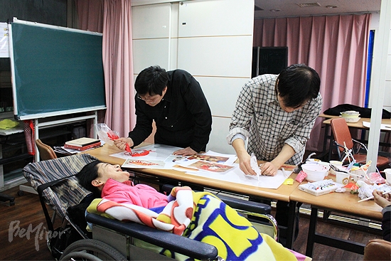 작품의 완성보다 만드는 과정이 더 큰 의미로 다가온다는 이영애(뇌병변장애 1급) 씨는 손을 움직일 수 없어 보조교사에게 자신이 구상한 그림을 말로 전달해야 한다. 이 씨는 다른 사람의 손을 거쳐야 하는 것이 아쉽지만, 표현하고자 하는 것들이 구체적으로 형상화돼 작품으로 만들어지는 과정을 거듭하면서 성격도 밝아지고 자신을 표현하는 것에 익숙해지는 변화를 얻었다고 한다.