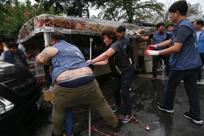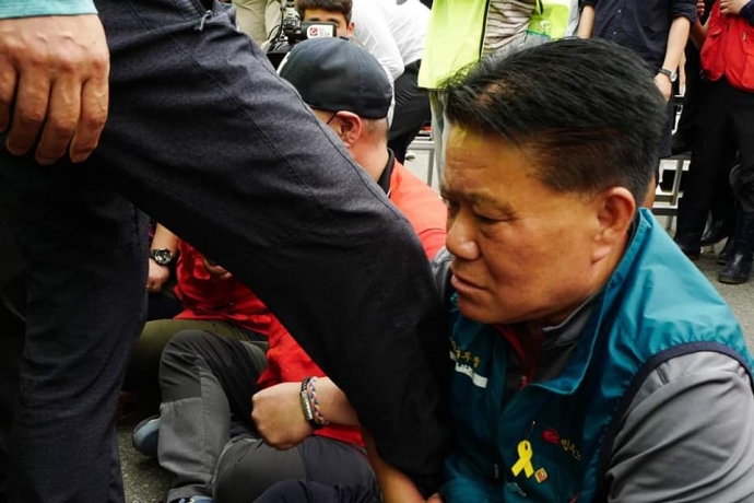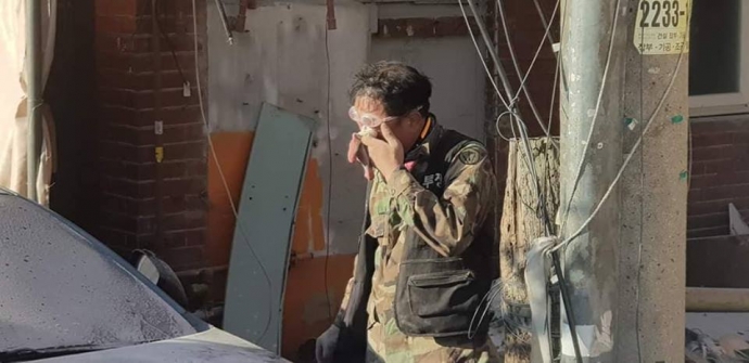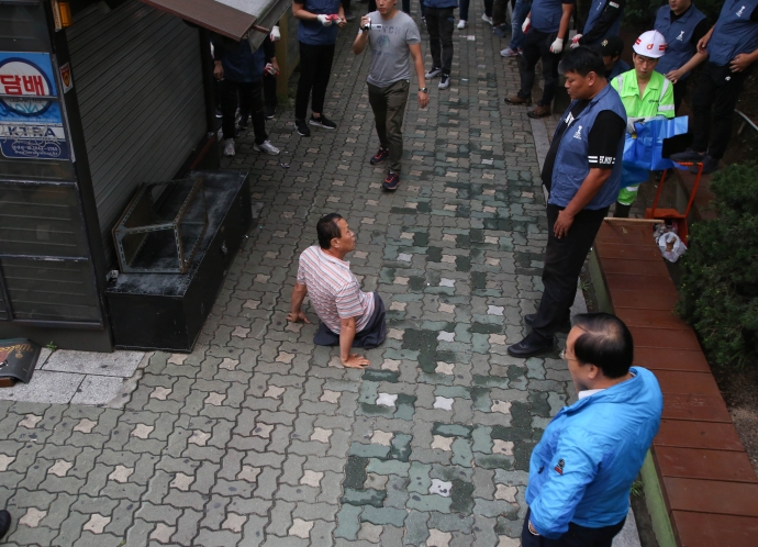오늘 오전, 김포지역에서는 노점상들이 시장실을 단속에 항의하였습니다. 대화 도중에 그 틈을 이용하여 단속한 것입니다. 어제 아현동 재개발지역 사진이 한 장 올라왔는데요. 용역 깡패들이 소화기를 철거민에게 뿌려 댄 사진이었습니다.