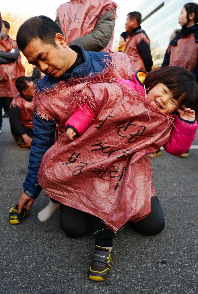 전국의 농민들과 함께 ‘민중대회’에 참여한 아빠는 밥 한 공기 값이 껌 한 통 값도 안 되는 현실에 참담한 표정입니다.