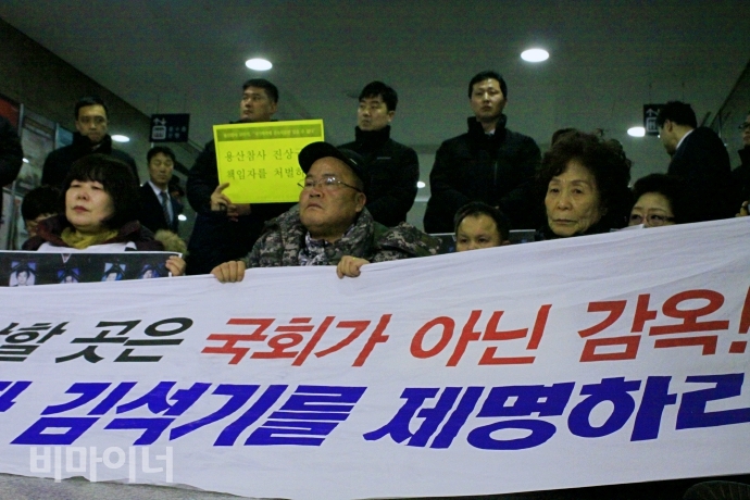 유가족과 생존자들은 "김석기를 국민의 대표로 절대 인정할 수 없다"며 국회의원들에게 김석기 의원 사퇴촉구 결의안을 제안해달라고 요청했다. 이들은 한 명의 의원이라도 호소에 응답해 줄 것을 기다리며 국회의원회관 로비에서 50여분간 기다렸으나 한 명도 이들의 제안을 받아들이지 않았다.
