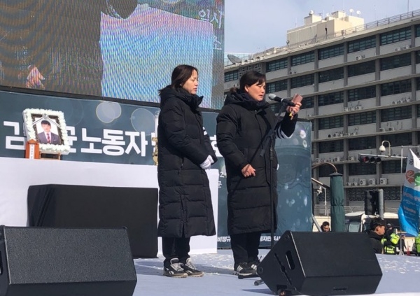 김명환 민주노총 위원장은 “민주노총은 고인의 죽음을 부른 비정규직을 철폐하고, 공공부문의 민영화를 제자리로 돌리는 투쟁에 나서겠다. 누군가의 희생과 목숨을 담보로 작동하는 사회를 바꾸는 투쟁에 나서겠다”라고 밝혔다.