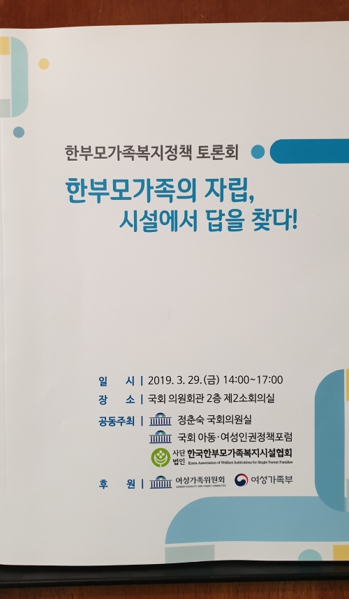 2019년 3월 29일 “한부모가족의 자립, 시설에서 답을 찾다”라는 주제로 국회에서 토론회가 열렸다. 최고 5년 미만인 한부모시설 입소기간을 10년으로 늘리고 시설종사자 3교대 근무가 가능하게 지원한다면 현재 한부모복지시설 정원 대비 입소율을 50%에서 100%로 끌어 올릴 수 있다는 것이다. 또한 적극적인 홍보와 시설확충을 통해서 더욱 많은 한부모들을 시설에 유치하면 한부모의 자립을 유도할 수 있다는 주장도 제기됐다.
