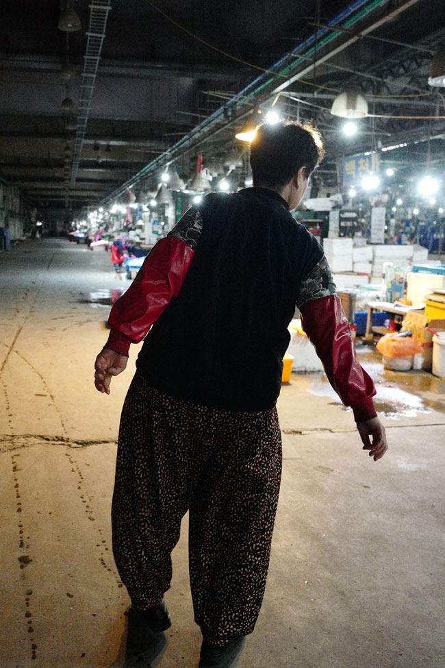 늙은 상인은 생선 피 냄새 진동하는 바닥에 주저앉아 운다