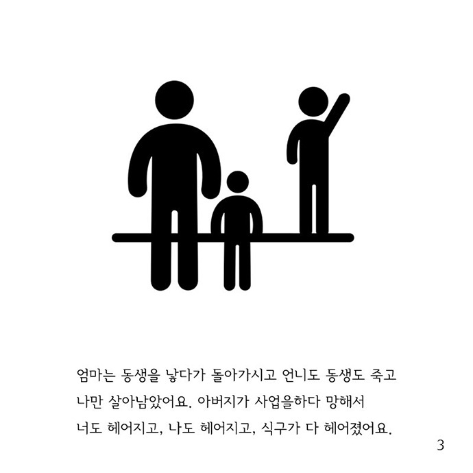 사진 3] 엄마는 동생을 낳다가 돌아가시고 언니도 동생도 죽고 나만 살아남았어요. 아버지가 사업을 하다 망해서 너도 헤어지고, 나도 헤어지고, 식구가 다 헤어졌어요.