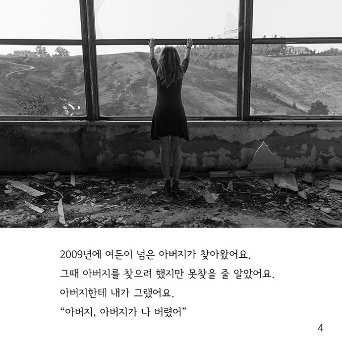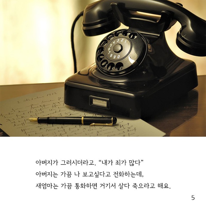 사진 5] 아버지가 그러시더라고. “내가 죄가 많다” 아버지는 가끔 나 보고 싶다고 전화하는데, 새엄마는 가끔 통화하면 거기서 살다 죽으라고 해요.