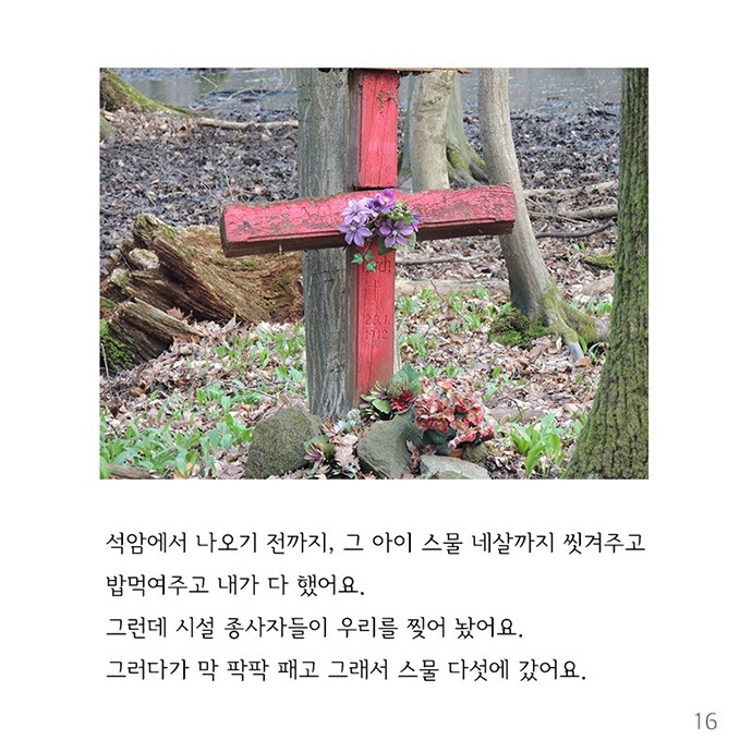 사진 16] 석암에서 나오기 전까지, 그 아이 스물 네살까지 씻겨주고 밥 먹여 주고 내가 다 했어요. 그런데 시설 종사자들이 우리를 찢어 놨어요. 그러다가 막 팍팍 패고 그래서 스물다섯에 갔어요.