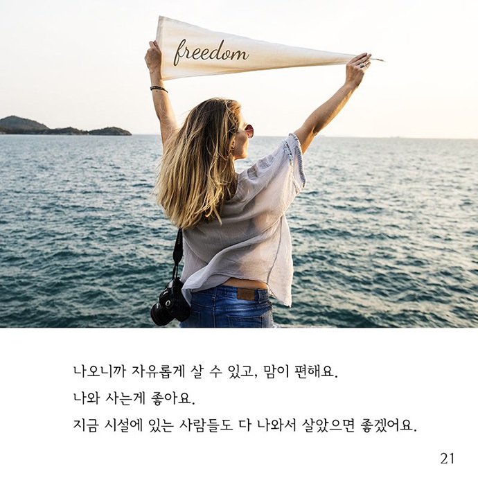 사진 21] 나오니까 자유롭게 살 수 있고, 맘이 편해요. 나와 사는 게 좋아요. 지금 시설에 있는 사람들도 다 나와서 살았으면 좋겠어요.