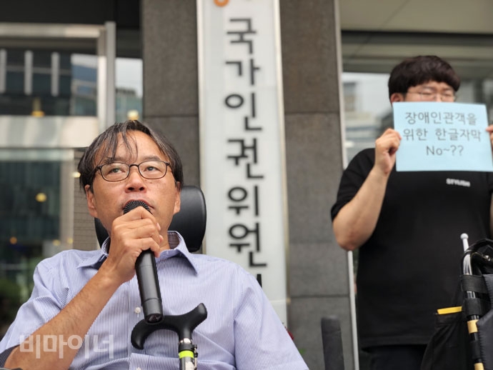 이에 대해 장애인차별금지추진연대(아래 장추련), 장애우권익문제연구소는 16일 인권위 앞에서 이러한 인권위의 결정을 알리며 규탄하는 기자회견을 열었다. 또한, 이날 시각장애인 4명, 청각장애인 3명은 영화 관람에 있어 편의 제공을 하지 않은 CGV와 롯데시네마를 인권위에 다시 진정하며 인권위의 ‘올바른 결정’을 촉구했다.