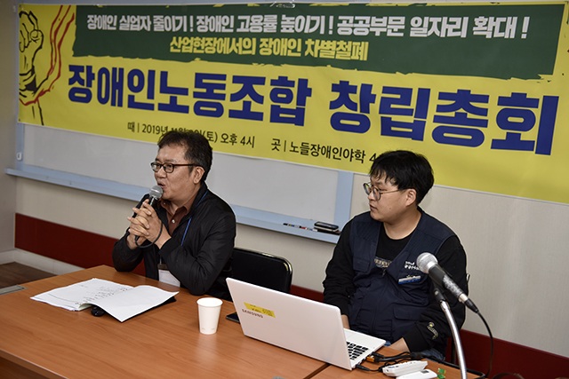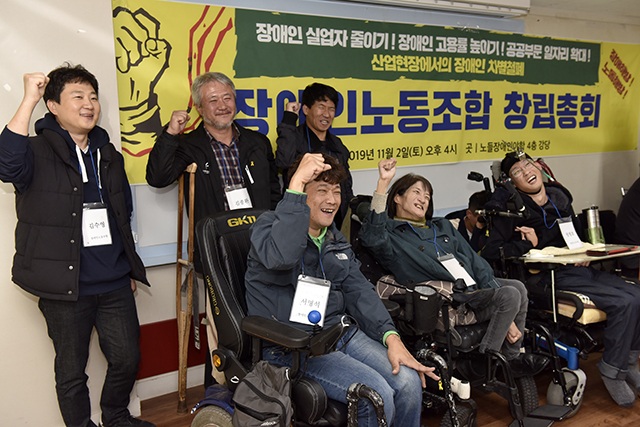 장애인노조는 2일 서울 종로구 노들장애인야학에서 창립총회를 열고 출범을 알렸다. 창립총회에 노조 조합원 23명이 참여했다. 이날 총회를 통해 정명호 장애인노조 지부장이 선출됐다.
