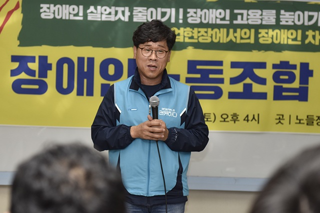 정명호 지부장은 “그동안 왜 장애인은 시설에 수십년씩 갇혀 살아야 하고, 실업 장애인은 왜 넘쳐나는가 의문이 들었다”며 “이런 고민을 장애인노조 운동으로 풀자는 결론을 내렸다. 우리는 국가와 기업을 상대로 싸워나갈 것이다. 우리는 노조를 통해 장애인 법정 의무고용률 상향 조정, 장애인 최저임금 적용 제외 폐지, 장애인 노동 안전 대책 마련 등을 요구할 것”이라고 말했다.