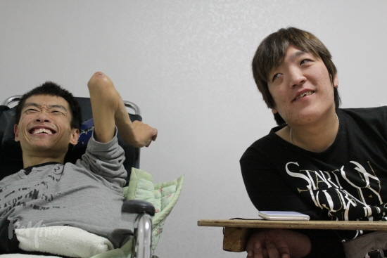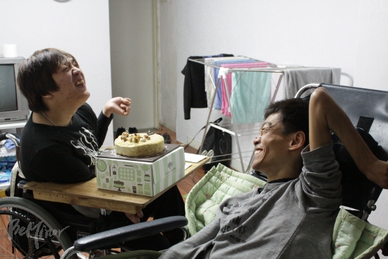 이 두 사람은 시설에서 나왔다. 그리고 독립생활을 시작했다. 사회복지공동모금회 주거복지사업으로 음성 꽃동네에서 나와 자립생활을 시작한 윤국진(36세, 뇌병변장애 1급). 박현(29세, 뇌병변장애 1급) 씨를 이들의 새 보금자리인 서울 광진구의 한 빌라에서 만났다.