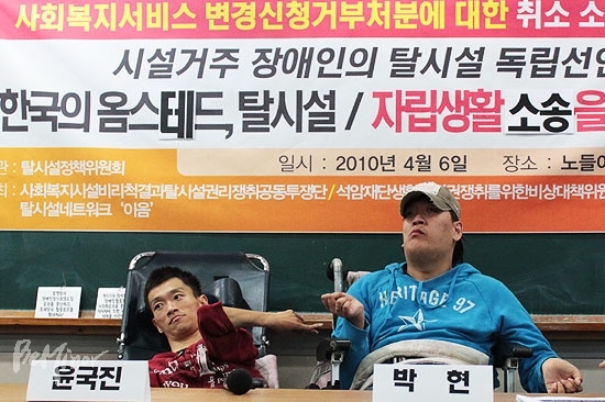 탈시설운동을 하는 단체인 장애와인권발바닥행동과 꾸준히 연락하며 자립생활을 준비하던 중 윤국진 씨는 그동안 연락이 완전히 끊어졌던 가족과 연락이 닿았다. 그러나 2009년 공익변호사그룹 공감을 만나 사회복지서비스 변경신청 소송을 시작하자 가족들은 소송 자체와 시설에서 나가는 것을 반대하며 연락을 끊어버렸다. ‘돌봐줄 사람도 없는데 무턱대고 나오기만 되냐, 밤에 일 생기면 어쩌려고 하느냐’라는 것이 가족들의 우려 섞인 반대 이유였다. 박현 씨 또한 가족의 반대가 심했다.