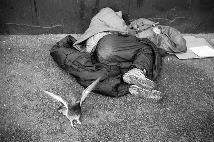 또 어떤 이는 서울역 차가운 바닥에 누워 잠을 청했다. 아스팔트 냉기가 뼛속까지 치밀어 올 텐데 그저 잠에 빠져 있다. 그 옆을 평화의 상징 비둘기가 날아오른다. 동짓날이 가까워져 오는 12월 평화롭지 않은 서울역 오후의 한때다. 부자나 빈자나 모두 잠을 자야 살 수 있다. 잠자리의 차이가 있겠으나 잠의 의미에 차이가 있을까?