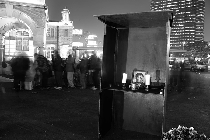 서울역은 대한민국 최고의 역사답게 화려하게 치장되어 있다. 이곳에서는 매년 동짓날 거리에서 죽어간 ‘홈리스 추모제’가 열린다. ‘고독사’ 또는 ‘시체 포기 각서’, ‘죽지 못한 사람들(사망신고 안 된 사람들)’, ‘기초생활보장수급자의 장제비보다 높은 장례비용’ 등의 단어가 전시되어있었다. 남루한 옷차림의 노인은 관련된 전시물을 물끄러미 바라보다 말없이 발걸음을 옮긴다.