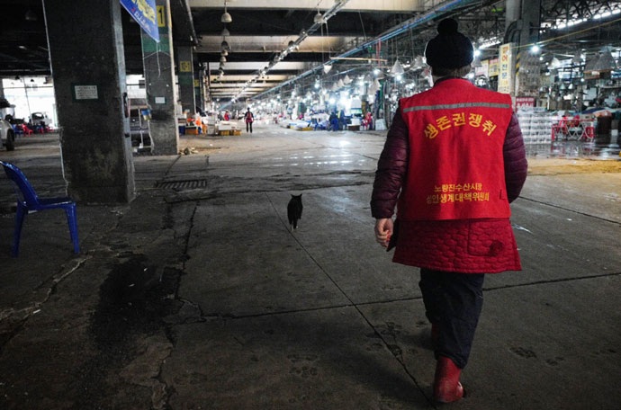 “꽃샘추위가 있을 따름이지 어디 오는 봄을 막은 적 있던가?” 이치에 어긋난 일이 세상을 이긴 적 없다며 상인들은 언제나 그렇듯 기지개를 켜고 또 장사를 준비한다. 1호선 노량진 전철역 할매는 오늘도 묵묵히 농성장을 지키며 작고 여린 생명을 기다리고 있다. 포크레인에 찍혀 쓰레기차에 실려 간 고양이가 슬며시 돌아오리라 굳게 믿고 계신다.
