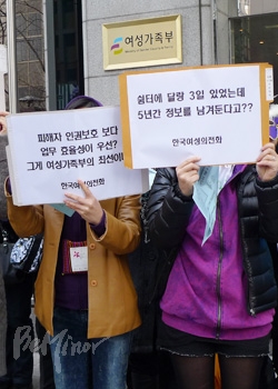 성매매문제해결을위한전국연대 정미례 공동대표는 “보건복지부에서 여성가족부를 분리한 것은 여성의 인권문제를 해결하기 위해서였는데 오히려 여성가족부는 복지부 입장만 우리에게 강조하고 있다”라고 꼬집고 “공문을 보내도, 장관면담을 신청해도 소수의견이라 묵살하는 여성가족부는 각성하라”라고 목소리를 높였다.