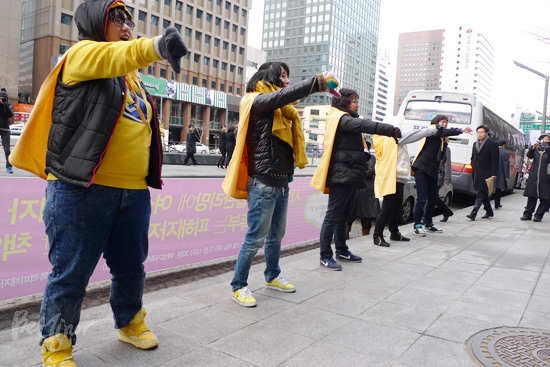 ![]() ▲만화주제가에 맞춰 여성가족부의 행태를 비판하는 노래를 부르는 참가자들. |