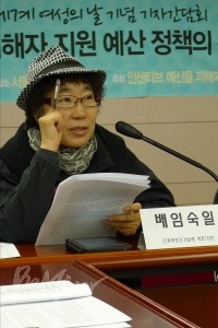 이날 기자간담회에서는 각 여성폭력피해보호시설 단체장들이 나서 예산정책의 문제점을 발표했다. 먼저. 전국가정폭력피해보호시설협의회 이영아 상임대표는 가정폭력피해자 지원 예산정책의 문제점을 발표했다.
