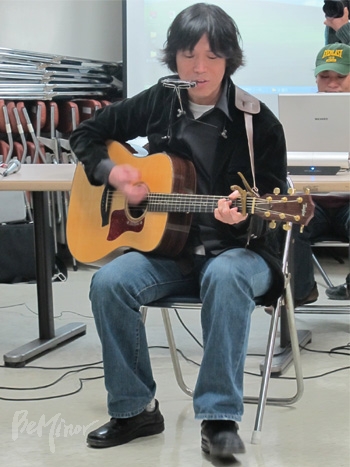 ![]() ▲'외로우니까 사람이다'를 열창하는 가수 이지상 씨. |