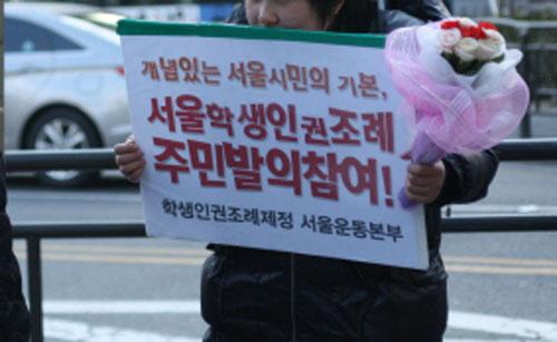 학생인권조례의 본무대는 조례 제정을 주민발의로 일구어내고자 선택한 서울이 아닐까 싶다. 서울에서는 30개가 넘는 시민사회단체들이 연대체를 꾸려 서울시민 1%의 서명을 받아 학생인권조례를 만들기로 하고 2010년 11월부터 서명운동에 돌입했다. 학생인권운동을 꾸준히 전개해 온 청소년·인권 단체들도 있지만, 이 운동의 의제에 이제 갓 공감하기 시작한 단체들도 함께하고 있다.