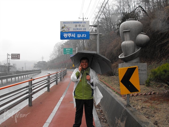 날씨가 좋지 않아 오늘 걷는 일정을 줄일 것이라고 이야기해준다. 목적지는 고개 넘어 곤지암까지 가는 것으로 정했다. 광주시에 들어오면서 동원대학 인근에서 기자 일행과 마주쳤다.