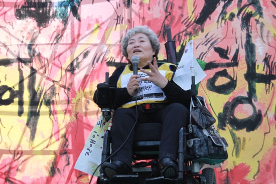이 중앙집행위원장은 “언제까지, 왜 장애인에게 장애등급과 가족 유무를 따지는 사회에서 우리가 살아가야 하느냐?”라면서 “나에게도 장애아동이 있는데 인간의 기본권을 찾는 여러분의 투쟁을 보면 눈시울이 붉어진다”라고 덧붙였다.