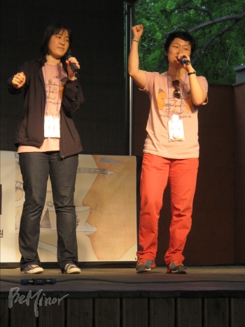 ![]() ▲폐막을 선언하고 있는 서울인권영화제 김일숙, 은진 활동가. |