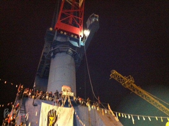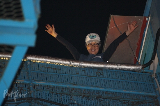 ![]() ▲한진중공업 85호 크레인 위에서 농성 중인 김진숙 지도위원. ⓒ참세상 |
