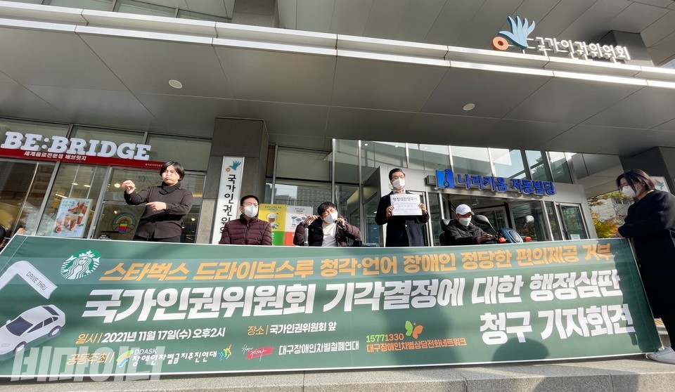 청각·언어장애인 당사자들이 스타벅스 드라이브 스루 매장에서 차별을 당했다고 호소했지만 국가인권위원회(아래 인권위)는 차별진정을 기각했다.