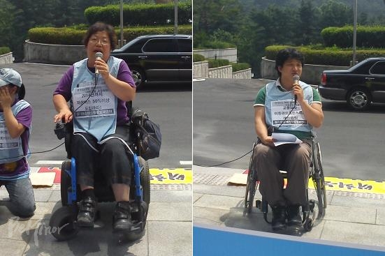 ▲경기장차연 이형숙 상임대표, 경기장차연 이도건 이동권위원회 위원장.