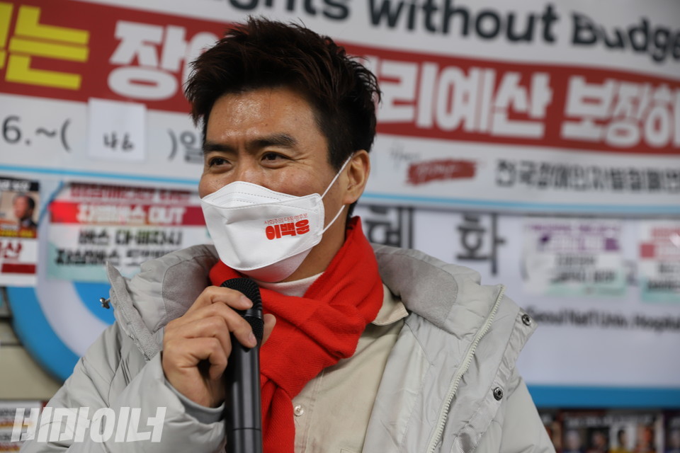 이날 선전전에는 20대 대통령 선거에서 ‘사회주의 대통령’을 기치로 건 이백윤 노동당 후보가 함께했다.