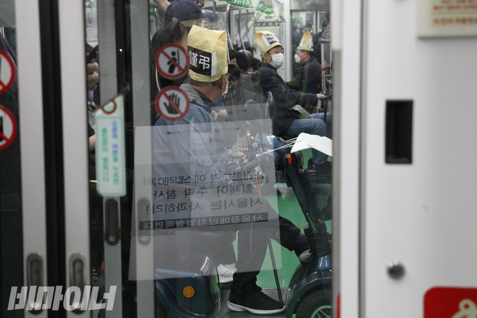 장애인들은 현재 대통령직인수위원회의 장애인권리예산 보장 약속을 기다리며 출근길 지하철 시위를 멈춘 상태다. 따라서 단지 열차를 타고 내리는 것일 뿐이란 걸 명확히 하며 안전하게 이동하기 위해 ‘이동식 발판’을 사용하겠다고 말했다. 휠체어 바퀴가 열차와 승강장 사이 넓은 틈에 빠질 수 있기 때문에 이동식 발판이 있어야만 승하차를 하겠다는 것이다.
