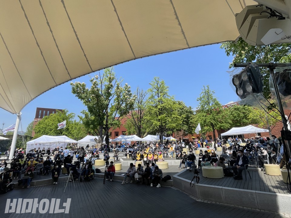 420장애인차별철폐공동투쟁단(아래 420공투단)은 1일 오후 1시, 서울시 종로구 마로니에공원 야외무대에서 해단식을 열고 “윤석열 정권, 장애인 정책 후퇴할 게 예상된다. 더 끈질기게, 더 힘차게 투쟁하자”고 결의했다.