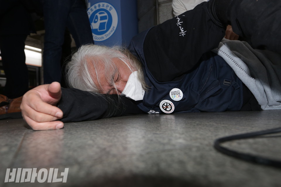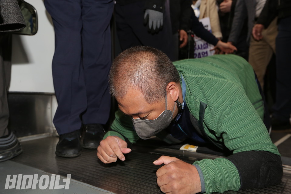 4일을 끝으로 전장연은 대통령직인수위원회를 상대로 한 경복궁역에서의 삭발식과 지하철 선전전을 마무리하고, 오는 6일부터는 대통령 집무실이 들어설 국방부 청사 인근의 삼각지역에서 투쟁을 이어간다. 경복궁역에서의 마지막 오체투지 현장을 사진으로 전한다.