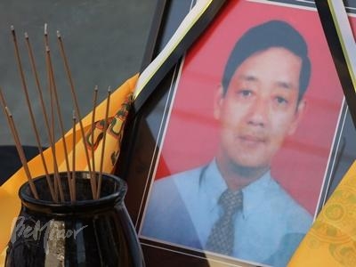 ![]() ▲故 던 라즈 갈레 씨가 일하던 회사 앞에서 그의 노동자 장이 열렸다. |