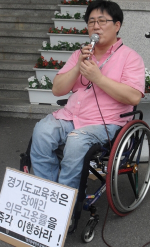 신승우 세움장애인야학 교장은 “교육이 미래를 만드는 것이라고 하는데, 장애인 의무고용률이 꼴찌인 교육청에서 미래를 만드는 것이 우려된다"라면서 "망신스러운 고용률을 벗어날 수 있도록 경기도교육청에 법 준수를 요구한다”라고 규탄했다.